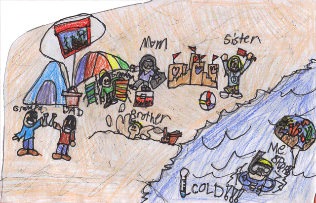 When we go there, we set up a tent with some umbrellas, a cooler, chairs, and snacks. We love to go to this big tidal pool with lots of hermit crabs. We usually put them in a bucket and make them a little habitat with seaweed, sand, pebbles, and some small clams. Popham Beach lies on the Atlantic Ocean and the water is very cold. It is hard to get used to the cold water, but I swim anyway! If you go scuba diving or snorkeling, you will find many species of fauna and flora. While swimming, sometimes the seals get close to you. Also, you can see big boats out in the distance where there are endless miles of empty ocean. It feels like it goes on forever.